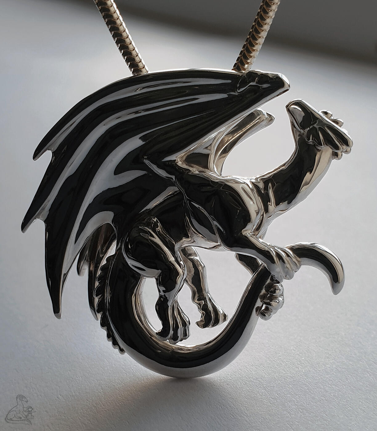 This can all be fixed by heating everything up again (+more polishing) or by electroplating with silver, but that's not something I do.Polishing a dragon pendant like this one can take a while since reaching into all those nooks can be difficult. I often poke at things for a while with a tiny little brush.