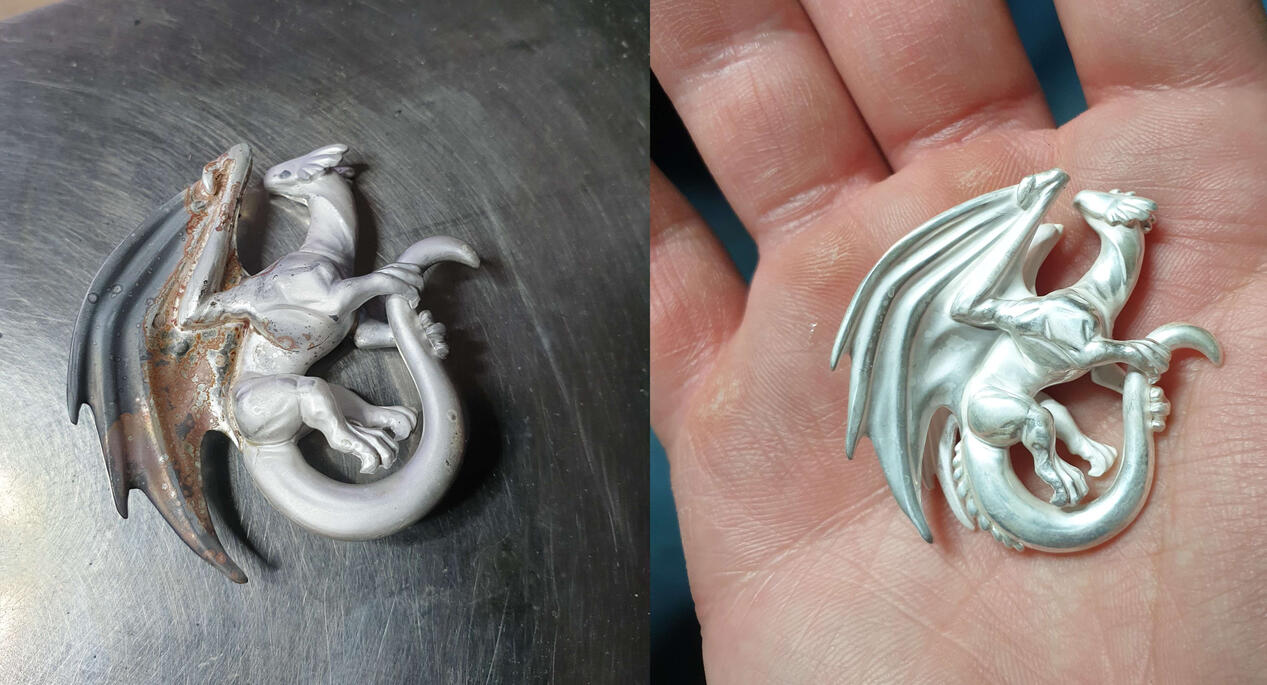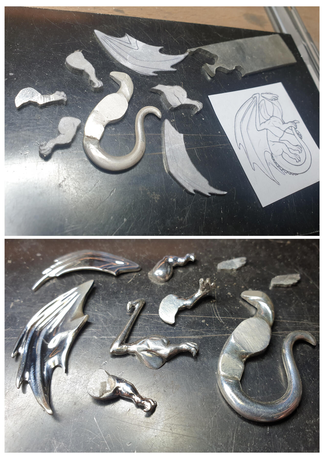 This can all be fixed by heating everything up again (+more polishing) or by electroplating with silver, but that's not something I do.Polishing a dragon pendant like this one can take a while since reaching into all those nooks can be difficult. I often poke at things for a while with a tiny little brush.